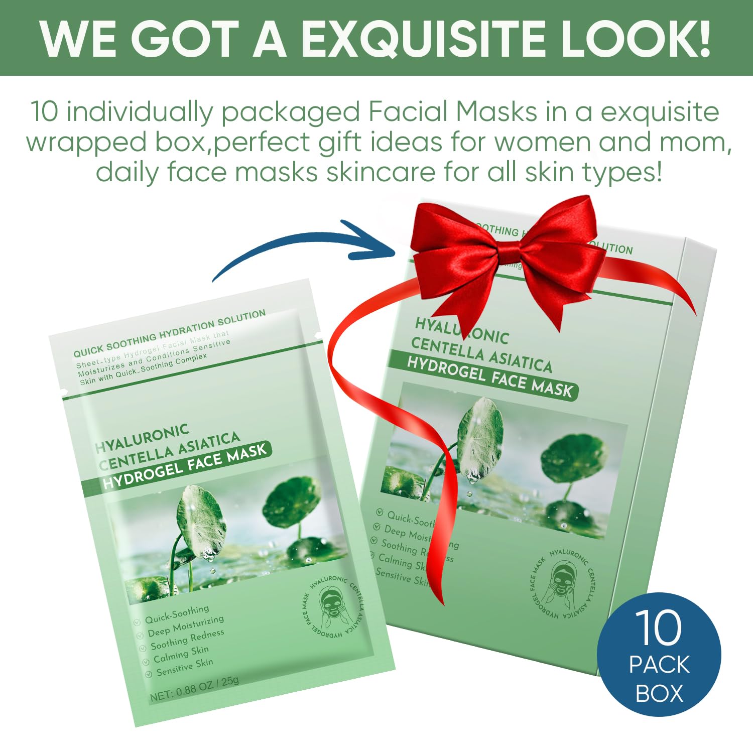 Calming Mask for Face Centella Asiatica Calming Mask Facial Masks with Aloe Hyaluronic Acid for Sensitive Skin Soothing Anti Aging Face Mask Face Masks Skincare Hydrating Sheet Face Mask 10 pack